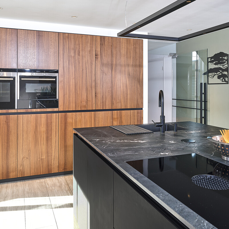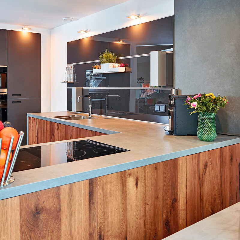 Eine dunkle Holzküche kombiniert Luxus mit einem robusten Look. Holzarten wie Nussbaum oder Wenge, aber auch dunkel gebeizte oder geräucherte Eiche verleihen Ihrer Küche eine tiefe, warme Farbe, die einen schönen Kontrast zu hellen Wänden oder Arbeitsplatten bildet. Eine Küche aus dunklem Holz eignet sich ideal für einen modernen oder industriellen Stil, kommt aber auch in Landhausküchen und Luxus-Küchen gut zur Geltung. Entdecken Sie die vielen Möglichkeiten in unserer Ausstellung, oder werfen Sie einen virtuellen Blick darauf: