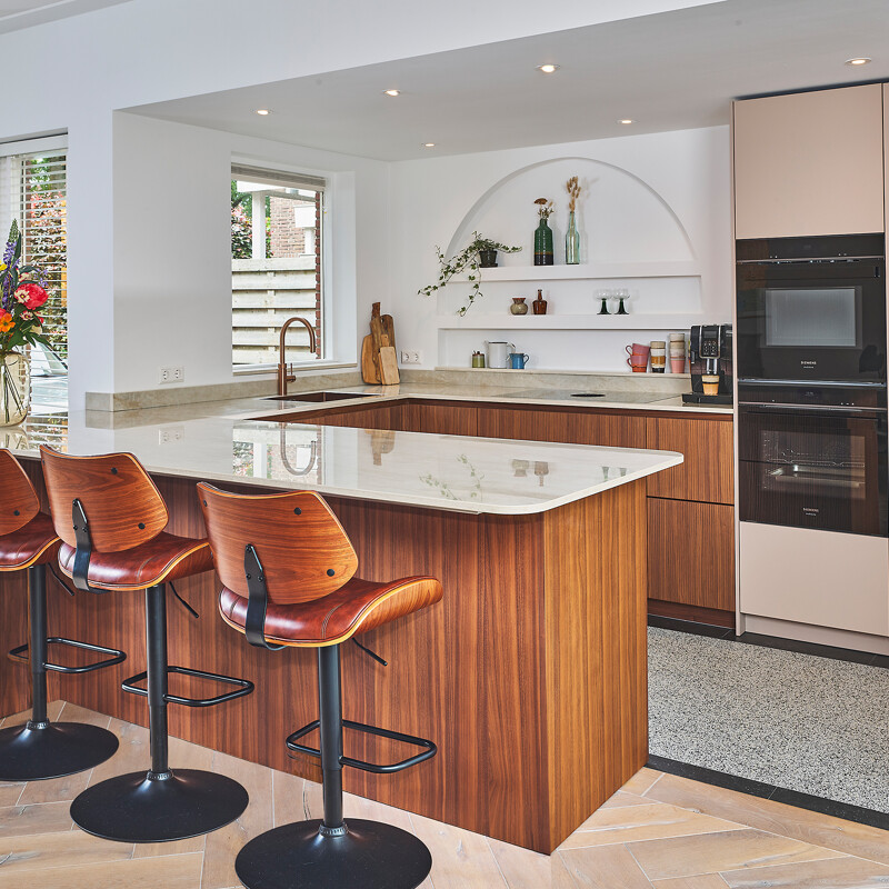 Sind Sie auf der Suche nach einer Holzküche? Bei Ekelhoff finden Sie jede Menge Inspiration. In unserer Ausstellung und hier auf unserer Website, zum Beispiel bei den realisierten Küchen bei unseren Kunden zu Hause. Wie diese Küche der deutschen Qualitätsmarke Ballerina, mit Rillenfronten in Nussbaum und Mattlack Light Nude, die wir bei unseren Kunden in Sassenheim eingebaut haben. Dabei können Sie sich auf hohe Qualität und perfekten Einbau und Service verlassen, wie Sie in den Bewertungen unserer Kunden lesen können. Vereinbaren Sie einen unverbindlichen Beratungstermin mit einem unserer gut geschulten Küchenplaner und gestalten Sie Ihre eigene Küche in Holz!