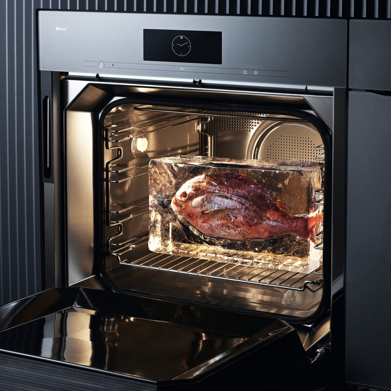Die revolutionäre Technologie des Dialoggarers erlaubt es Ihnen, Gerichte zuzubereiten, die zuvor nur in der Fantasie kreiert werden konnten. Die M Chef Technologie des Dialoggarers nutzt elektromagnetische Wellen, gemessen in Gourmet Units, mit denen Sie Ihr Essen präziser garen können als je zuvor. Die Möglichkeiten sind unendlich: Garen Sie Fisch in Eis, ohne es schmelzen zu lassen. Bereiten Sie Kalbsfleisch im Bienenwachs-Mantel zu, während das Wachs in Form bleibt. Finden Sie den perfekten Garpunkt der einen Hälfte eines Lachsfilets, während die andere roh bleibt - für perfektes Sashimi.