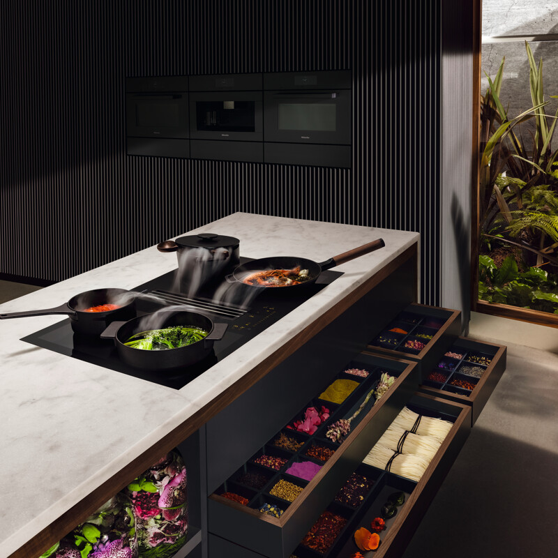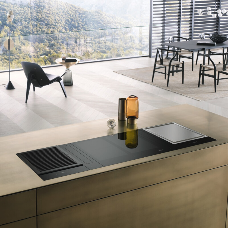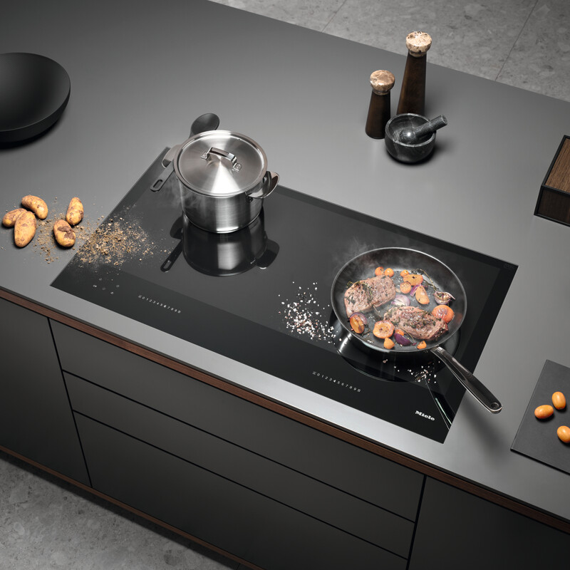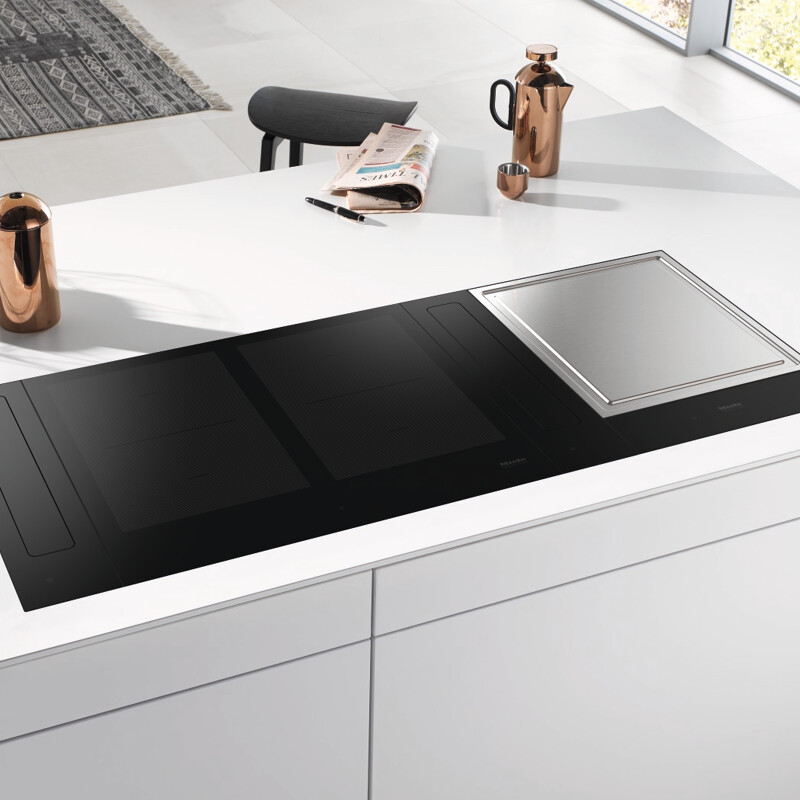 Das neue Miele TwoInOne ist die leistungsstärkste Kombination aus Induktionskochfeld und Dunstabzug und verlegt den Dunstabzug nach unten. Ihr Wohnbereich bleibt angenehm geruchsneutral, während Sie Ihrer Leidenschaft für das Kochen nachgehen. Mit großzügigen, flexiblen Kochzonen ist das Kochfeld groß genug für vier Töpfe oder Pfannen. Dank PowerFlex XL mit maximaler Schnelligkeit beim Erhitzen.